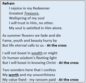 Keith and Kristyn Getty and Graham Kendrick capture the reality in their song “My Worth is Not in What I Own.” Listen to the words (link at the bottom of this post) and realize that your worth has been set very high by the One who created you and died for you. The symbol that makes this crystal clear is the cross.