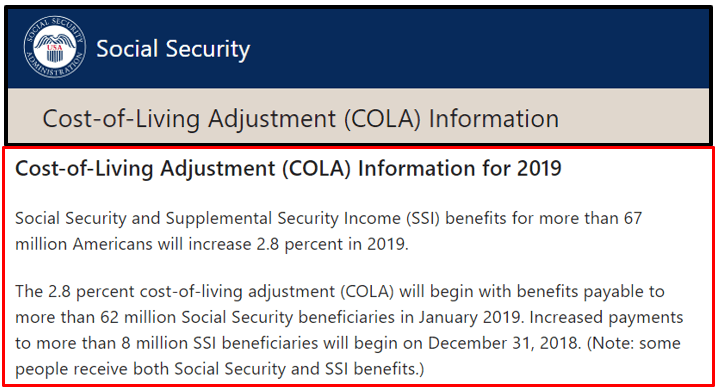 There is one COLA that rarely satisfies. It is Social Security COLA. Social Security is the only annuity I will ever own. Of course, I did not get a choice in the matter. Over the course of my working years (1969-2014) I paid $136,137 in FICA taxes. Knowing what I know today, had I invested those dollars in an S&P 500 fund with a low expense ratio (not possible for many years) my total savings from just my FICA contributions would be close to $900,000.