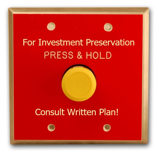In the investing world, it is wise to have safety mechanisms in place. Most of the time your best course of action is the “do nothing” approach. You don’t want to panic sell, so you should have an “Investment Preservation” button. The best button is to have a written investment plan. While this sounds complicated, it doesn’t have to be. You just need to think about your reasons for buying an investment and any rules that would cause you to trigger a sell of those same investments.