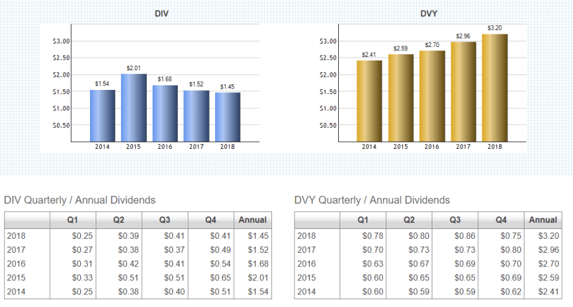 Recommendation: Avoid DIV unless you think the yield is good. Don’t expect much in the way of growth. This is not an investment I would recommend. I still prefer VYM, SCHD, DVY and DGRO.