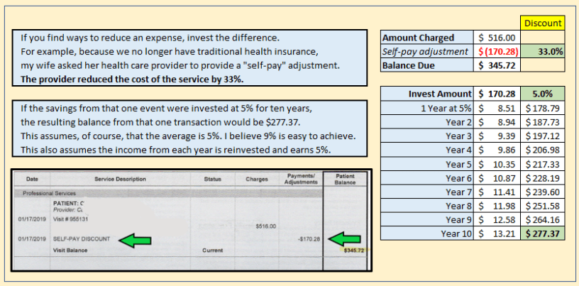 Many people say they don’t have any money left over after they pay the bills every month. There is nothing to share, to give or to invest. Let me encourage you to rethink your strategy. My mother often “saved” money on things like groceries so that she had more to give to those who had needs. I have another example to share that is related to medical costs.