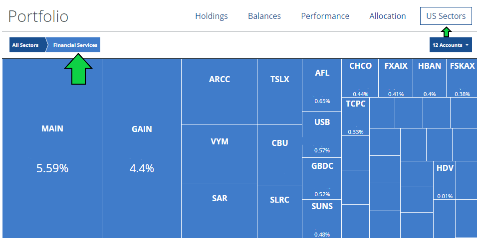 As you can see, one of the prominent sectors in our portfolio has to do with financial services. This includes banks, insurance companies, business development companies and investment companies. Health care and technology are also big parts of my investment strategy. PC makes it very easy to drill into the details and the site is easy to navigate. Furthermore, the price is right. It is a free tool.