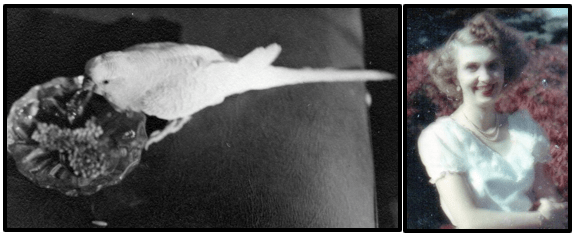 Parakeets are not generally known for being very bright and they do not usually mimic human speech like a parrot might. Jingles, however, was not normal and my mom was extremely patient and persistent. She taught Jingles to say some amazing things, and she delighted in repeating the things she had trained Jingles to say. Because Jingles had a mirror in his cage, and would look at himself in the mirror, mom taught him to say “Jingles, you’re such pretty, pretty boy!” You could hear the joy in mom’s voice as she repeated those words many times. Mom also taught him to say something even more complicated: “Peter Piper picked a peck of pickled peppers, Poopsie!”