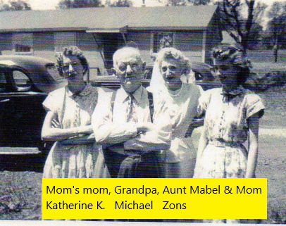 Back in the 1930’s when mom was a little girl, life was difficult. They were poor and lived in Chicago. Mom’s mother’s name was Katherine (Scheible) Johnson, Kramer, Holtmann. Katherine’s parents were Michael and Agnes Scheible. It looks like Michael was born in 1870 and was a widower in 1940.