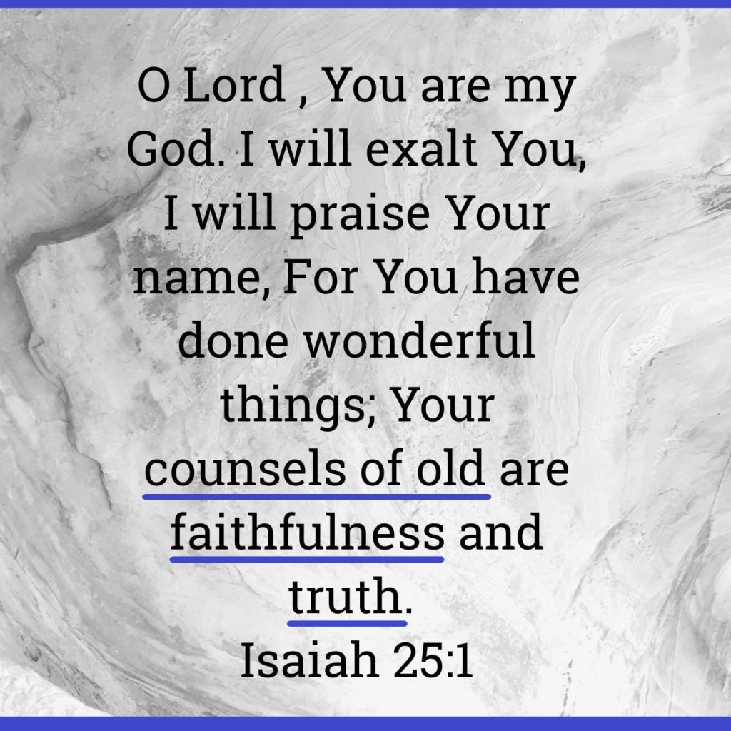 The ESV translates Isaiah 25:1 this way: “O Lord, you are my God; I will exalt you; I will praise your name, for you have done wonderful things, plans formed of old, faithful and sure.” In Romans 11:33, after talking about God’s salvation plan, the Apostle Paul breaks out with, “Oh, the depth of the riches and wisdom and knowledge of God! How unsearchable are his judgments and how inscrutable his ways!”