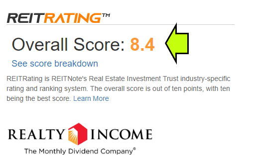 When you look at the REITNOTES section for their scorecard, you will see a “Dividend Section” and a “AFFO & Efficiency Section.” Although dividend payout growth is modest, all the other scores are 9-10 out of ten. This is far better than most. Also note you should look at the “Leverage section” to see how well the REIT manages debt. Realty Income’s “Debt Leverage Health Trend” is very good.
