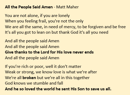 You can listen to Matt’s song here: https://www.youtube.com/watch?v=R377Az6RQiI