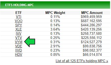ETFs with MPC – If you own an ETF you may own a small slice of MPC. VYM holds MPC and our grandchildren own VYM.