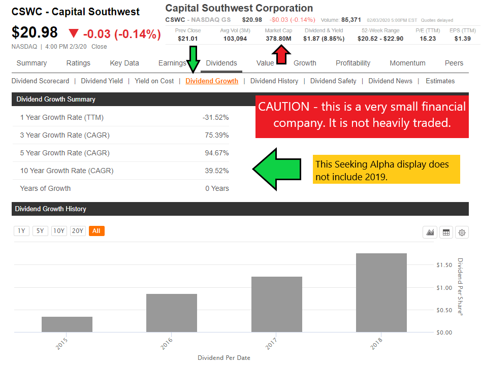 CSWC is a very small financial company, so it is not heavily traded. Don’t buy this type of investment if you cannot handle wide swings in the stock price.