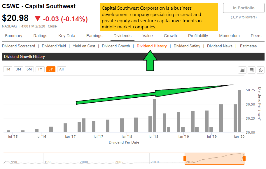 Capital Southwest is not for every investor, but I like owning shares for the high dividend payout. There is only one ETF that I know has CSWC and even that ETF should be viewed as higher risk. The ETF for business development companies is BIZD, but I don’t recommend it. The expense ratio is just silly, so don’t buy BIZD.