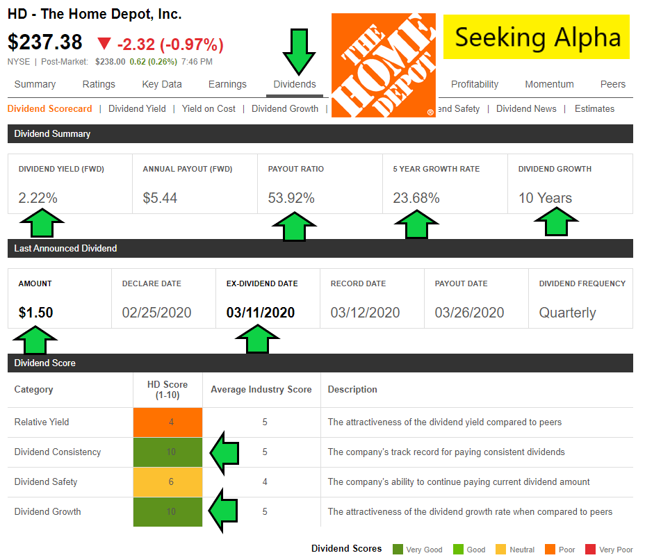 A Seeking Alpha screen tells me everything I need to know about the Home Depot’s dividend quality and sustainability. The numbers look very good. We own 75 shares of HD.