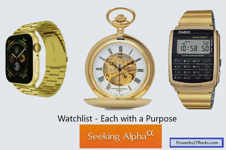 Watchlists are often useful tools for investors as well. I used to use several Fidelity Investments watch lists, but they didn’t offer much for ongoing activities. I also thought setting them up was clumsy and cumbersome. I have five Seeking Alpha watchlists. Each has a purpose as follows: