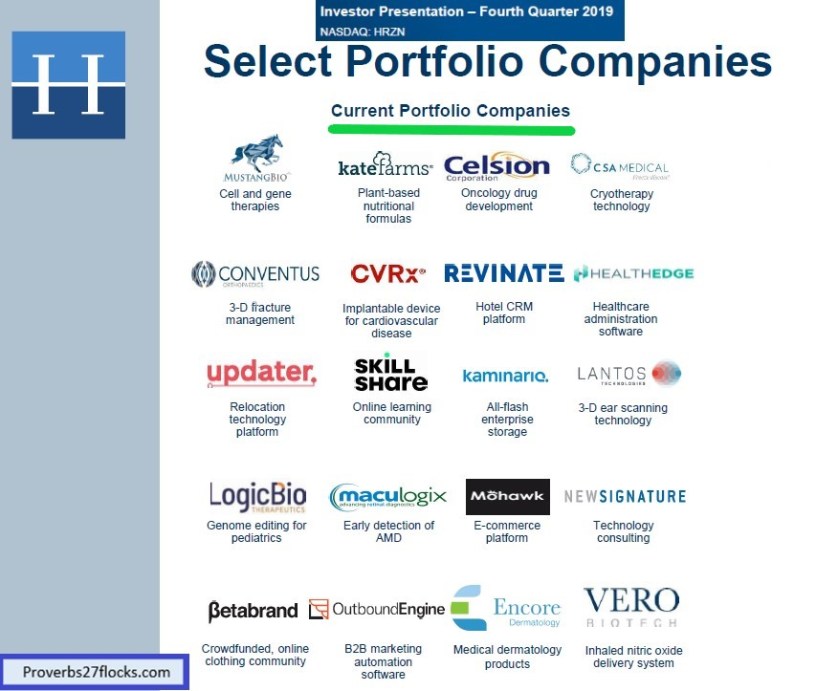 Last week I purchased 500 shares of HRZN. Horizon Technology Finance Corporation is a BDC (business development company.) HRZN specializes in lending and investing in development-stage investments. It focuses on making secured debt and venture lending investments to venture capital backed US companies. “Our customers typically are privately-held, development-stage technology companies backed by established venture capital firms in emerging technology, life sciences, healthcare information and services, and sustainability industries. We also finance publicly traded technology and life science companies.”