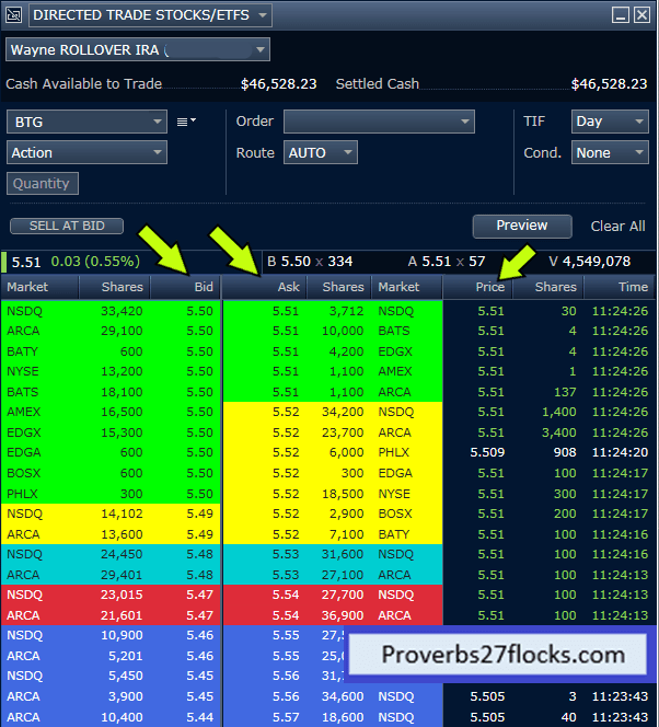 - Enter a preliminary order. In this case I chose $5.52 per share.