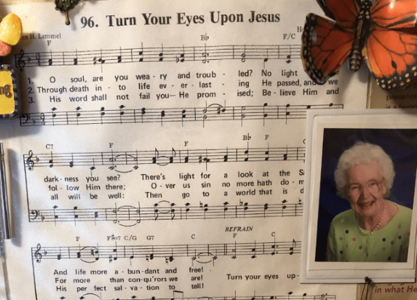 Even more important to her were the hymns she loved. That is obvious in her little home today. On her refrigerator I saw a familiar hymn: Turn Your Eyes Upon Jesus. When asked about her favorite hymns, she mentioned “The Old Rugged Cross” as one of her favorites. “A Mighty Fortress is Our God.” “How Great Thou Art” – loves George Beverly Shea’s version of it. “Blessed Assurance.” And so, it isn’t surprising that she recorded hymns and played those in her store as well. As a boy, I don’t remember any of that. I was mesmerized by the animals, the smells, the piranha fish in a huge aquarium and the talking birds.