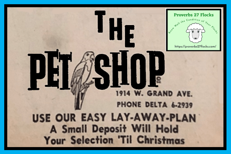 When I interviewed Aunt Vera recently, she told us that The Pet Shop opened in December of 1952. Aunt Vera is 90 years old (born in 1930) and her memory is astoundingly clear, and she can tell stories about the things that happened many years ago. She opened her business when she was 22 years old. That is remarkable. Think about what you were doing at 22. Let me tell you about how the Lord prepared her for her life’s work…