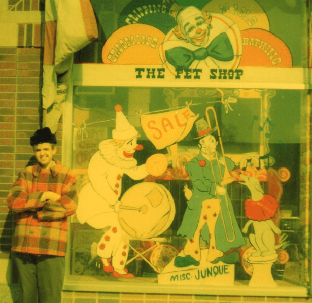The Pet Shop was an amazing place. The Ocelot, the talking birds, it was just fun to go there. Charlie’s clown pictures and other paintings, ( window art) added to the fun brightness of the shop. Vera knew so much about everything there, it wasn’t just a business it was her domain. Berger going down to the corner grocery store to buy his breakfast cereal on payday, watching the clock, when he rode with you on the car, green light go! So many good memories.