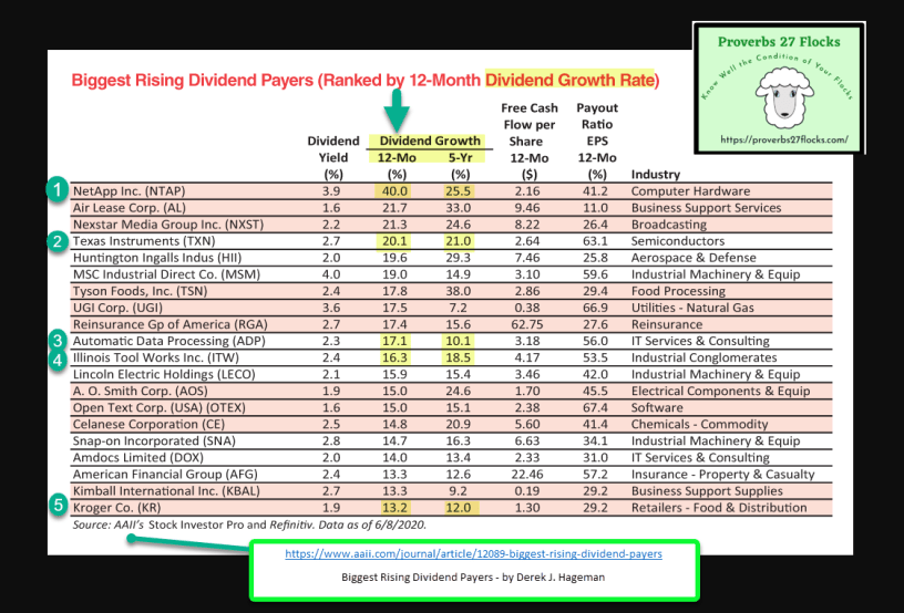 Another good AAII article I read was written by Derek Hageman. Mr. Hageman has this to say: “Dividend-paying stocks can satisfy investors’ need for current income and capital growth, especially during volatile markets. One area of consideration is for investors to turn to the greater stability of rising dividend-paying stocks. While much remains uncertain, the highest-quality companies have proven their ability to grow their dividends over time, demonstrating an ability to survive through a range of market environments.”