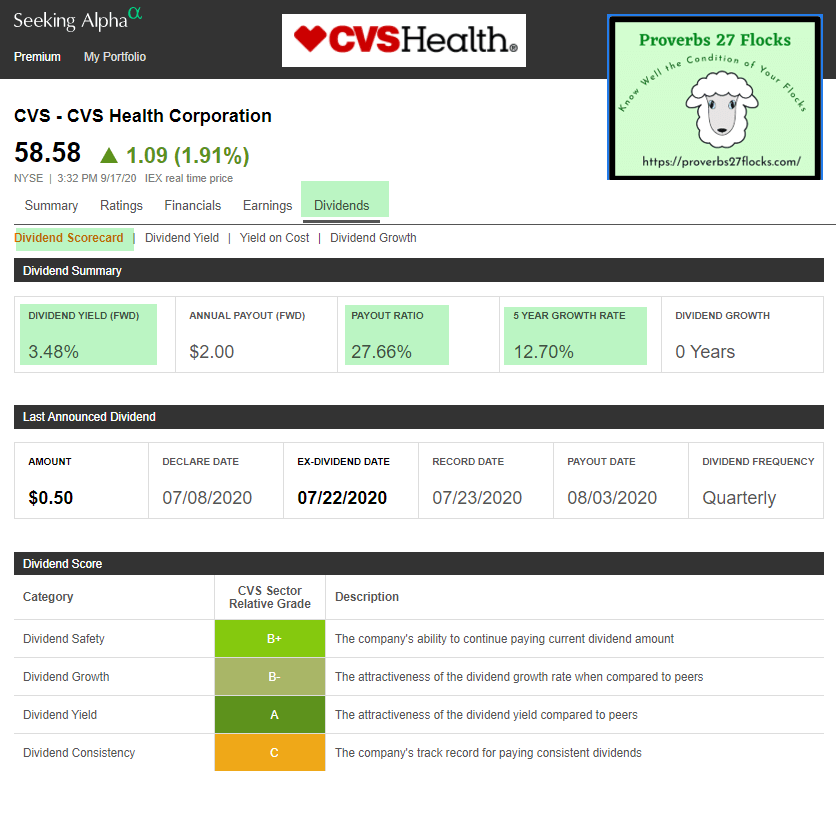 Ninety-five quarters is 24 years. As I continue to manage our investments, I tend to look favorably at new opportunities in technology and health care. I have been watching CVS Health drop in price over the past couple of months – since June to be more specific. Today I decided the stock was oversold. By that I mean the current price doesn’t value CVS appropriately.
