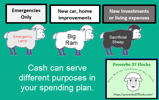 Emergency Sheep are kept in a savings account like one provided by Ally Bank. Please don’t think all of your cash dollars have to stay in the savings account fold. But don’t let these sheep wander. See the link below.