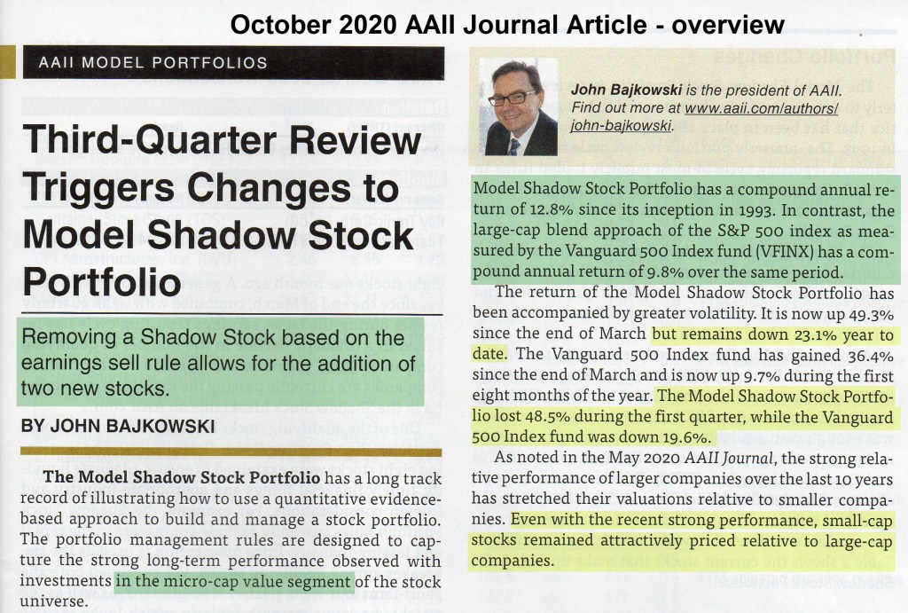 If you are open to a bit more risk, then finding one good minnow might be the way to go. In my case, AAII provides ideas that may be worthy of investment. In the October 2020 AAII Journal, two companies were added to the “Model Shadow Stock Portfolio.” One was KTCC and the other was TITN. The first is an information technology investment while Titan Machinery Inc is an industrial stock investment.