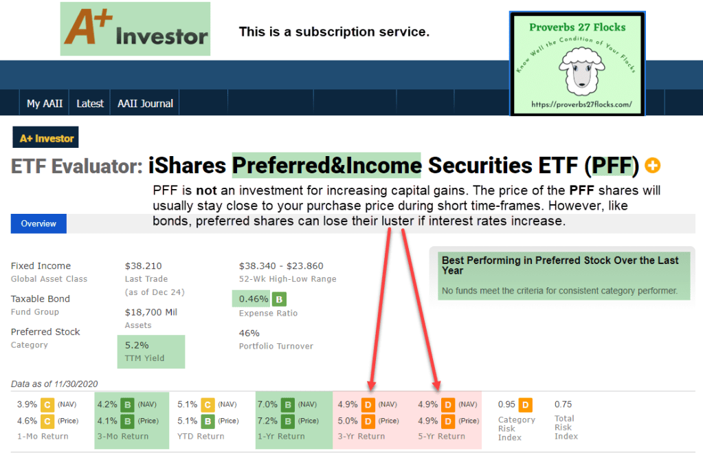 Here is the A+ Investor view of PFF. I pay a subscription for this information.