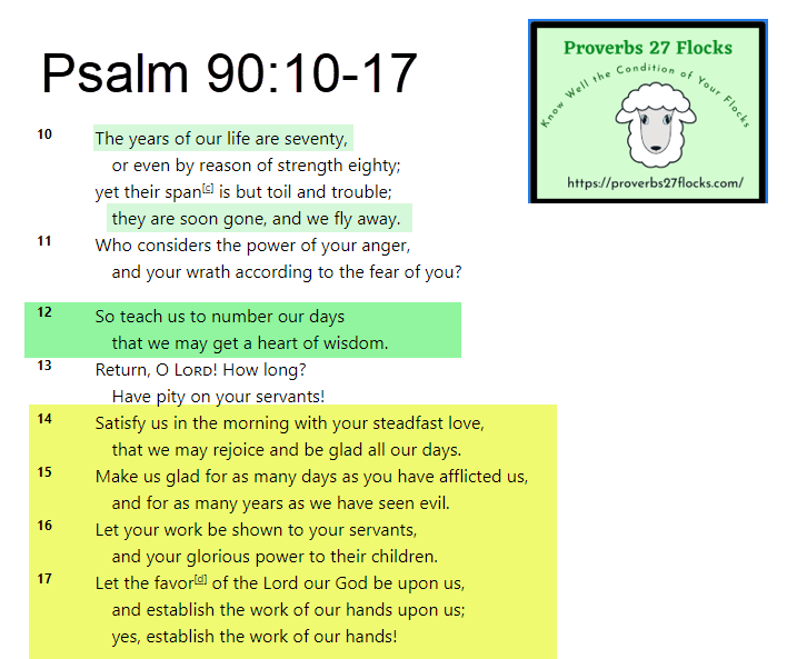 So, today’s priority and the resulting decisions should be the result of numbering my days correctly with a focus on loving God and loving others. Those two, work hand-in-hand. If you do the first one, the second one has to follow. If I think I can do the second one without considering the first and greatest commandment, I am delusional.