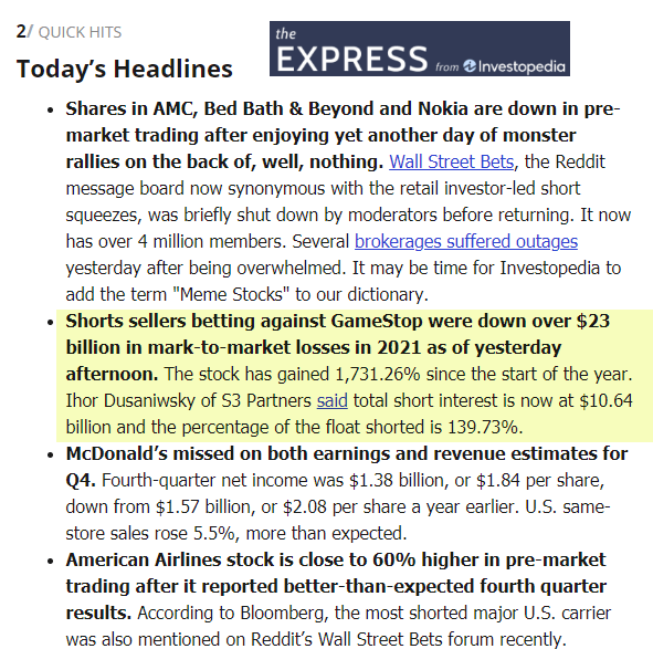 February is a short month, which means it is not long. If you are short in stature, then you are not tall. If you are a man, you might be wearing shorts as underwear (or perhaps briefs which are shorter shorts), so a short is a thing. If you have an electrical path that is compromised, you also have a short. That is often dangerous, causing an electrical fire. If you go to the store with $10 in cash, and the item you want to purchase is $10.01, you are short cash. If you buy something that is not what was promised when you try it, you might feel shortchanged. Finally, if you think a company’s stock price is too high, and that it is likely to drop significantly, then you can “short” the stock. That brings us to a company: GameStop (GME).