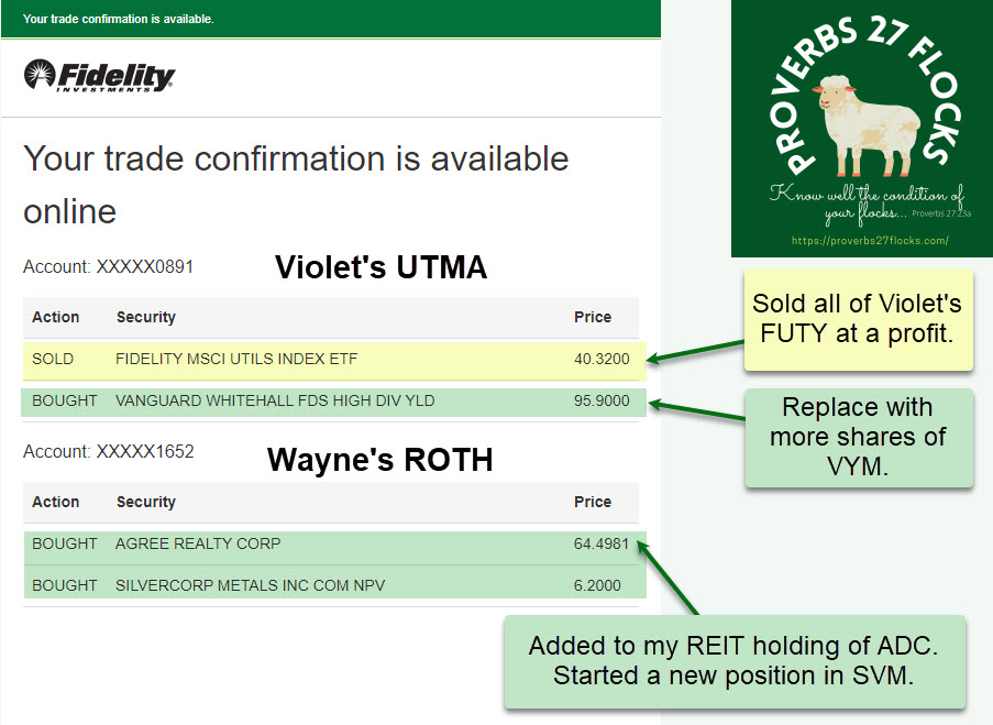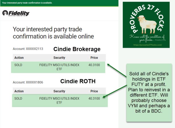 As soon as I sold the FUTY shares in the UTMA account, I purchased more shares of VYM to replace them. The diversification and dividend characteristics are better. This also simplifies my management of these accounts.