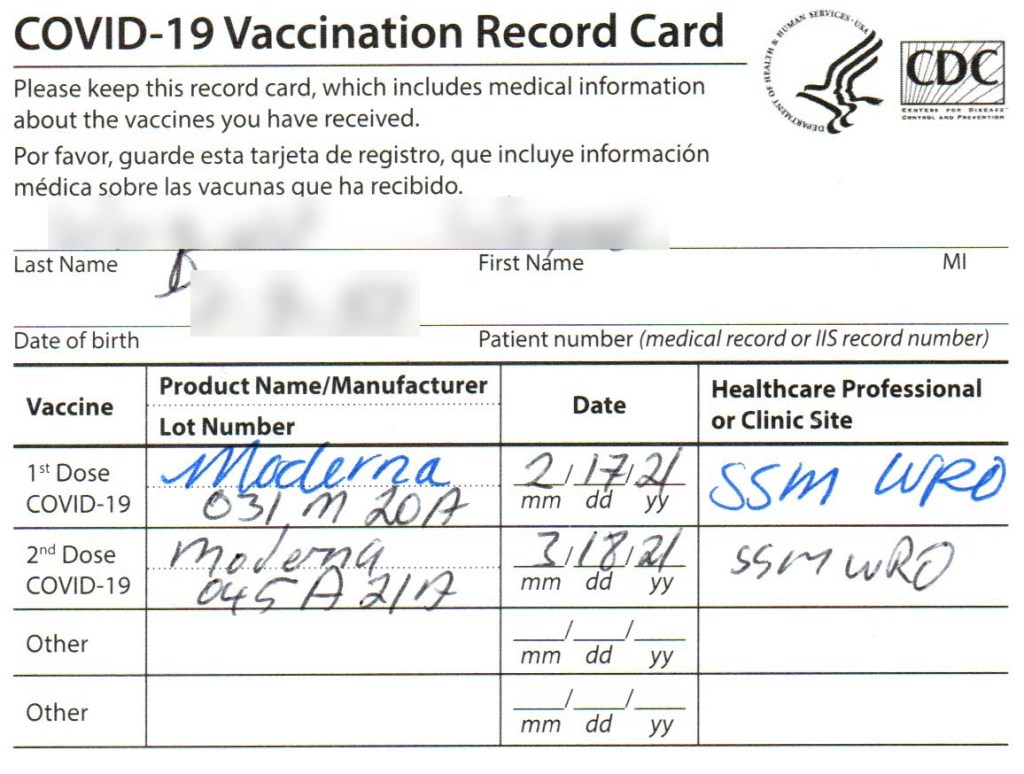 On Thursday, March 18, I had the second of the two Moderna Covid-19 vaccines. My arm still aches. In addition, I slept most of Friday. I felt like I had a bad cold, was chilled, and had little appetite until about 8 p.m. Apparently the army of defenders did not like the second Covid invasion, and they responded with a noticeable war. I have not taken any cold medicine all winter, but I did during these two days. Yesterday I couldn’t stop coughing. Today my coughing is back to my normal allergy-related issues. This all makes me appreciate the way my body is designed even more. It also gave me a better sense that my immune system wasn’t ignoring the invasions.