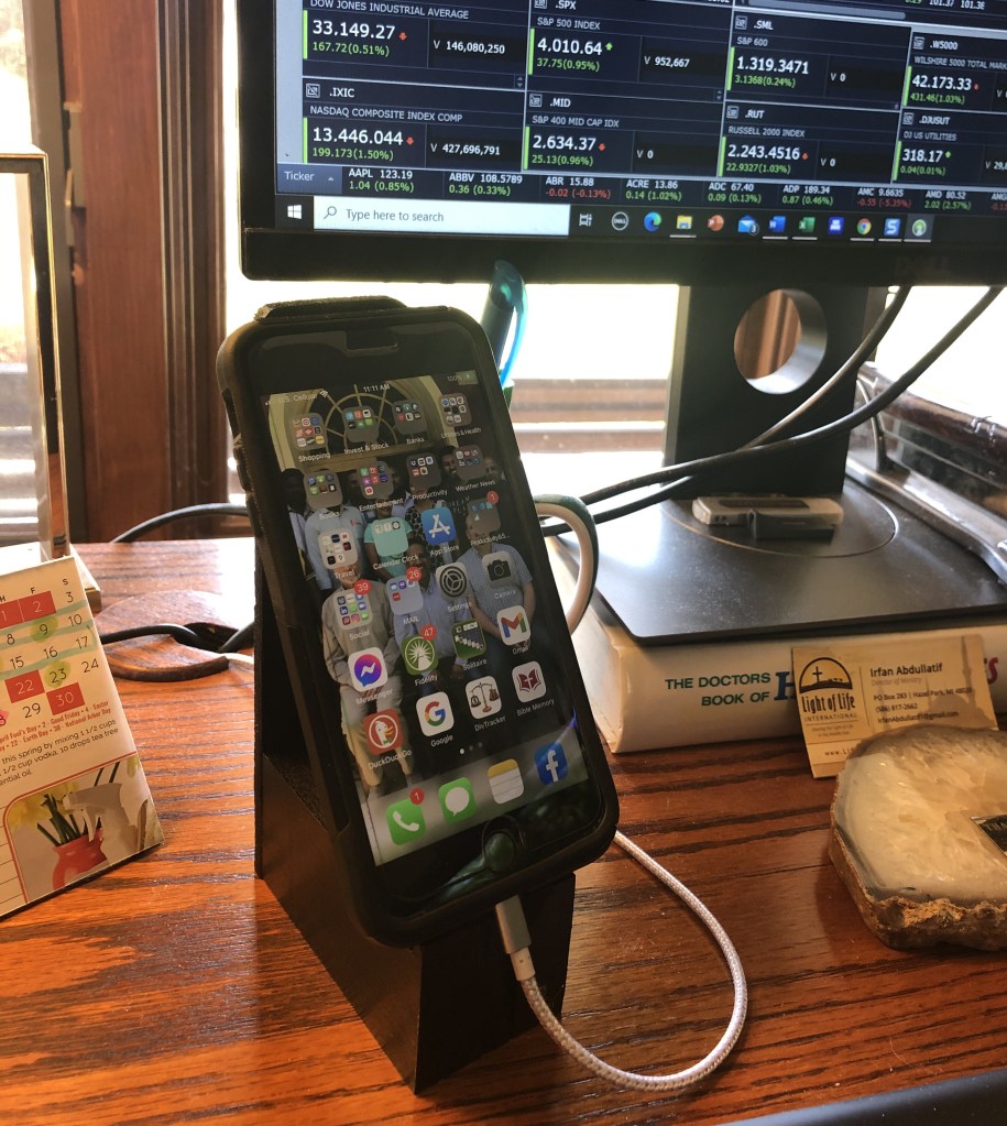 I like being able to see my iPhone screen when I am working on my home office computer. There really is no way to prop it up without using something that takes up the limited space. I probably already have too much stuff on my desk as it is, which makes dusting the desk an infrequent task. After looking at several different types of holders on Amazon, I decided to do what I know my dad would have done. I built one.