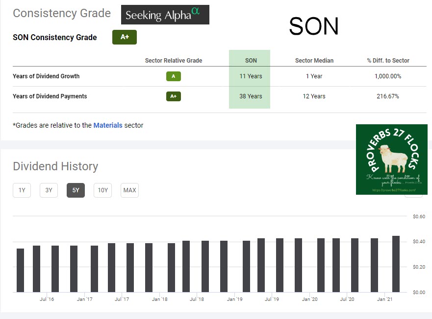 Cindie and I own 200 shares of SON in my traditional IRA as a long-term investment.