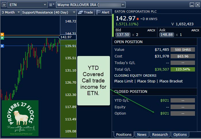 Covered Calls are a great way to earn more income. I have continued to trade covered calls on my ETN (Eaton) shares and have received $921 in income from that aspect of this investment. That doesn’t include the dividends I receive. So far in 2021 I have received $380 in dividends so my total income from ETN is now over $1,000 in the first four months of the year.