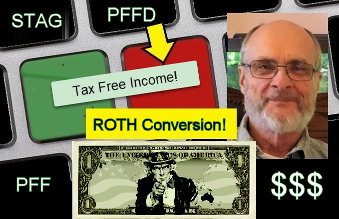 This morning I called Fidelity Investments and asked them to transfer my 500 shares of PFF from my traditional rollover IRA to my ROTH IRA. I also moved 200 shares of PFFD and 500 shares of STAG. This means I will owe income taxes on around $42,500 of income. However, because of charitable giving, our net taxes on this transfer won’t be as painful as they might have been if we did not have deductions to lighten the tax burden.