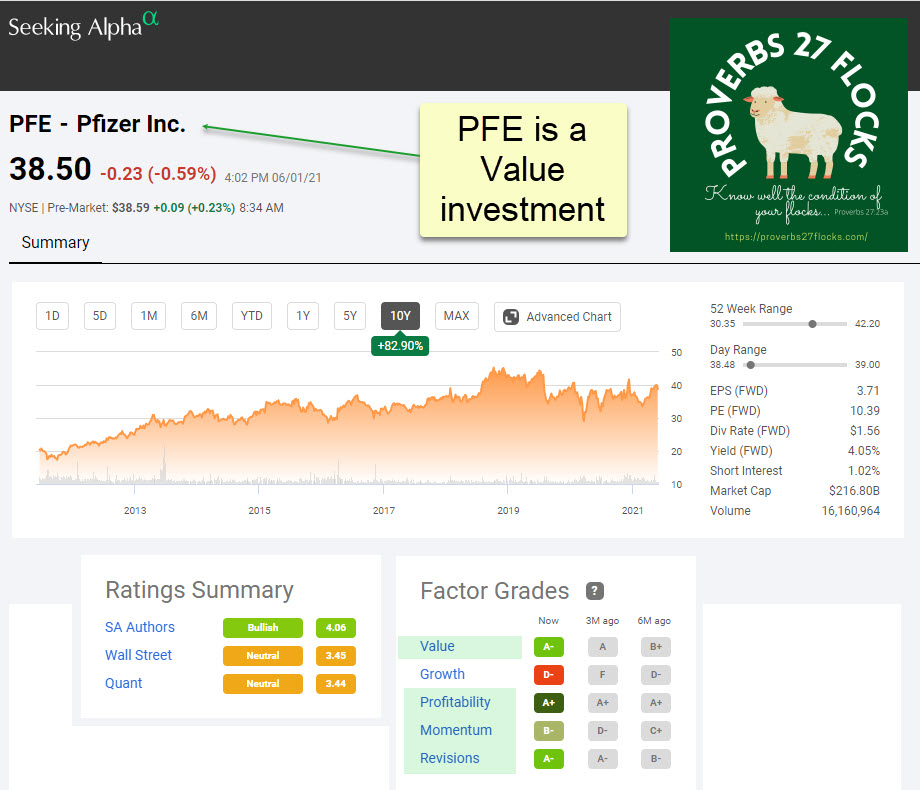 Cindie and I own a combined total of 3,300 shares of PFE, so those shares are currently worth about $127,000. We hold shares in six of our Fidelity Investments accounts. Since 2016, we have received a total of $11,282 in dividends from PFE. This year, because of our increased investments in PFE, we expect to receive over $5,000 in dividend income.