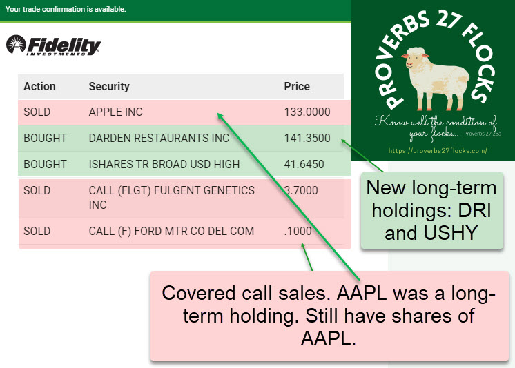 I gave up my long-term holding of 100 AAPL shares at a fair price and a tremendous profit. We still own AAPL, so I am not done with that investment. Other short-term positions were also called away. I buy short-term positions of Ford (F) and General Motors (GM). I then sell covered calls for a price greater than my purchase price. That gives me income from the covered call plus the short-term income from the sell price profit.