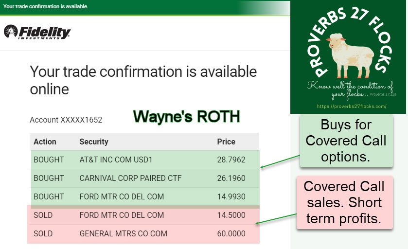 You will also notice some short-term buys. I buy investments like CCL (Carnival Corporation & plc) so that I can use the shares for covered calls. I do repeat buys of Ford and AT&T for the same reasons.