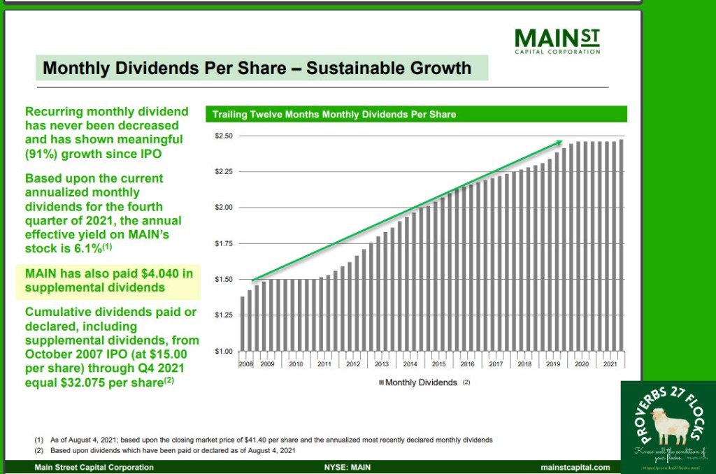 Cindie and I own 3,025 shares of MAIN as a long-term investment. As a result, it is in the top ten investments we hold.