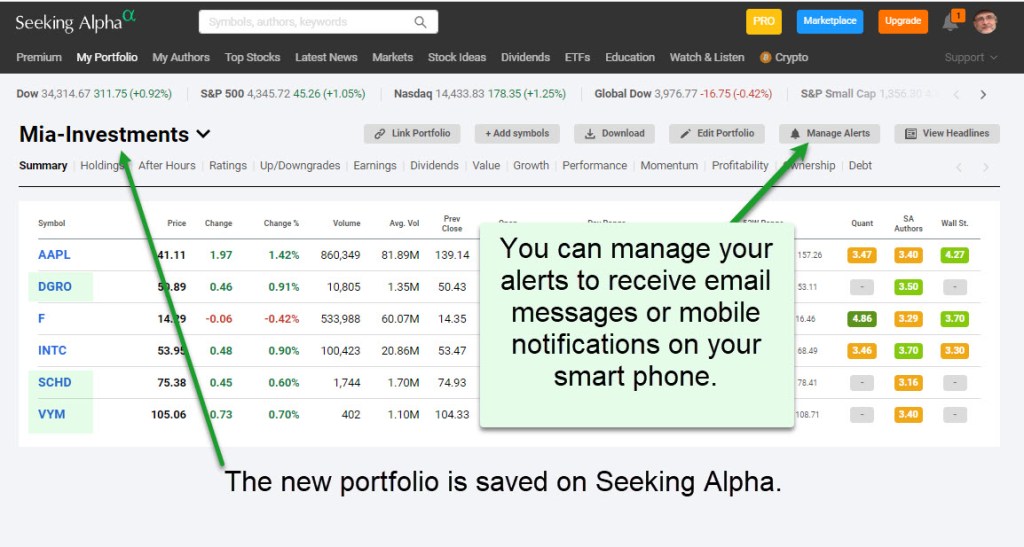 Creating a Portfolio on Seeking Alpha