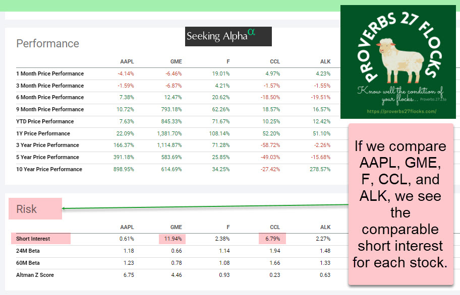 Seeking Alpha is one place I go to look at the short interest of a stock. Bear in mind, that if an investor is short on a stock, they may potentially profit if the price declines. It is considered bearish for a stock to have high or rising short interest. If the short interest keeps growing, watch out! However, this doesn’t mean the company will go bankrupt or out-of-business. However, before you speculate on a stock like GME, remember there are wise investors who think it isn’t a good investment at the current price.