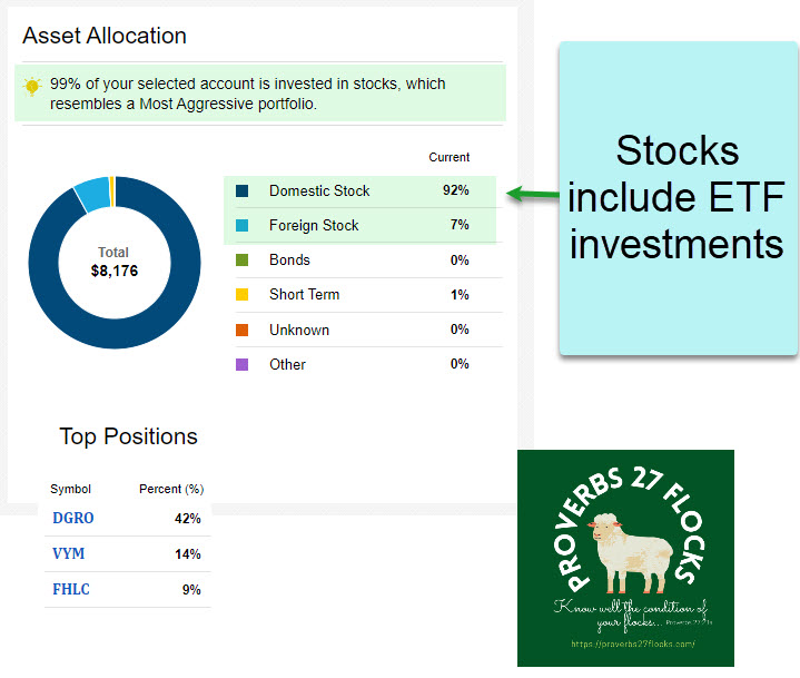 One thing the images do not show is the past mix of investments. In 2015 a large portion of the total invested dollars was in ETF FTEC. Because technology did so well, I decided to sell some of those holdings in order to add to DGRO. Sometimes it is time to sell a winner, or at least lighten up a bit on it.