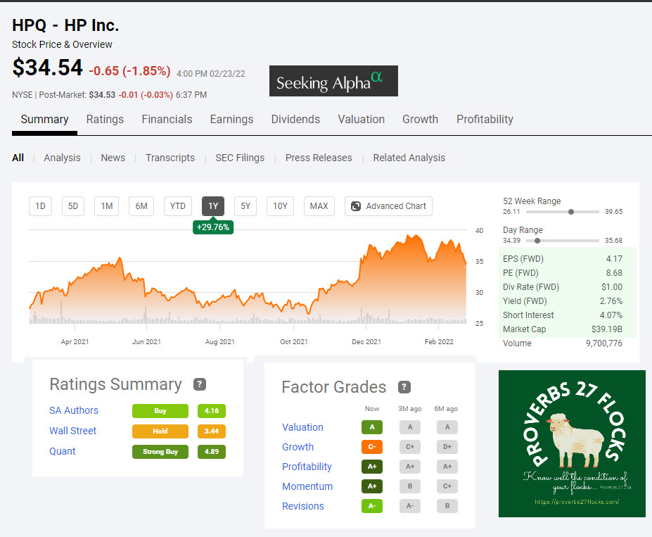 When I see the market going down, I consider buying more shares of stocks I already own. For example, yesterday I added to our holdings in ABBV, HPQ, and STX. When I bought the 300 shares of HPQ, I did buy limit orders. I wanted 300 more shares, but I did not buy them all at once. I bought 100 shares on Tuesday, and then did two separate buy limit orders on Wednesday, each with a lower price. I may buy more shares of Ford (F) today. I am also considering buying more HPQ.