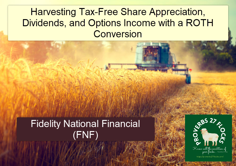 When I am obligated to withdraw the government-mandated RMD (Required Minimum Distribution) from my IRA, I will be paying taxes. The larger the account balance, and the more it grows, the higher our taxes will be. I can manage our overall tax burden on an annual basis to keep income taxes reasonable. It often makes sense to pay the tax today, instead of waiting until I have to pay even more taxes as the result of taking my RMDs at age 72 and beyond. So I will be paying taxes on income of about $46,000. The actual amount will be determined when the market closes and the final price for FNF is determined. At this hour, FNF is trading just slightly above my cost basis. Therefore, my taxes can be calculated and paid as a part of my quarterly estimated taxes.