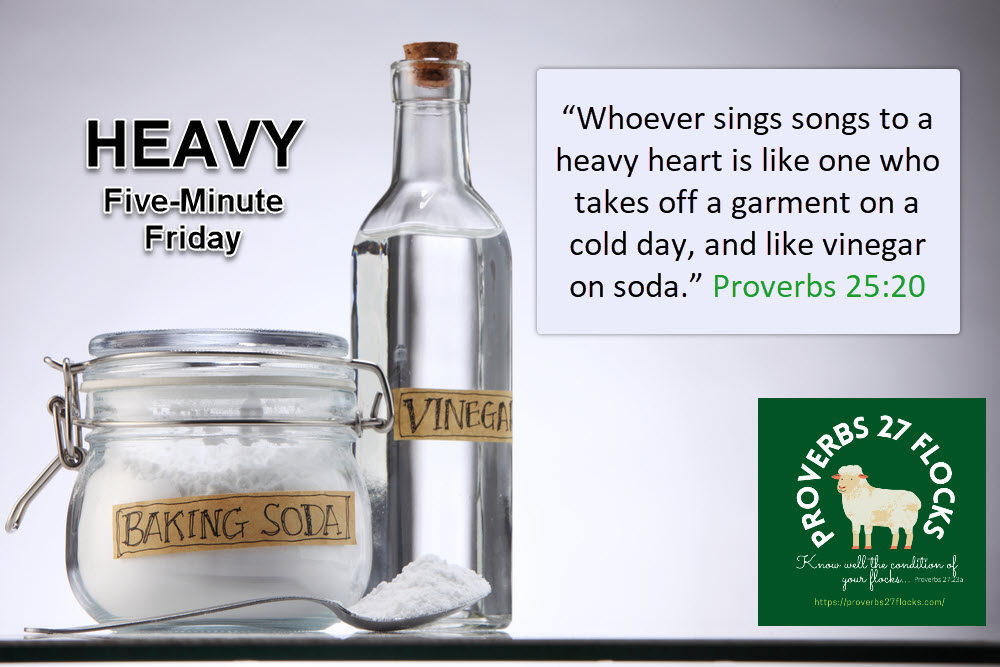 Proverbs 25:20 “Whoever sings songs to a heavy heart is like one who takes off a garment on a cold day, and like vinegar on soda.”