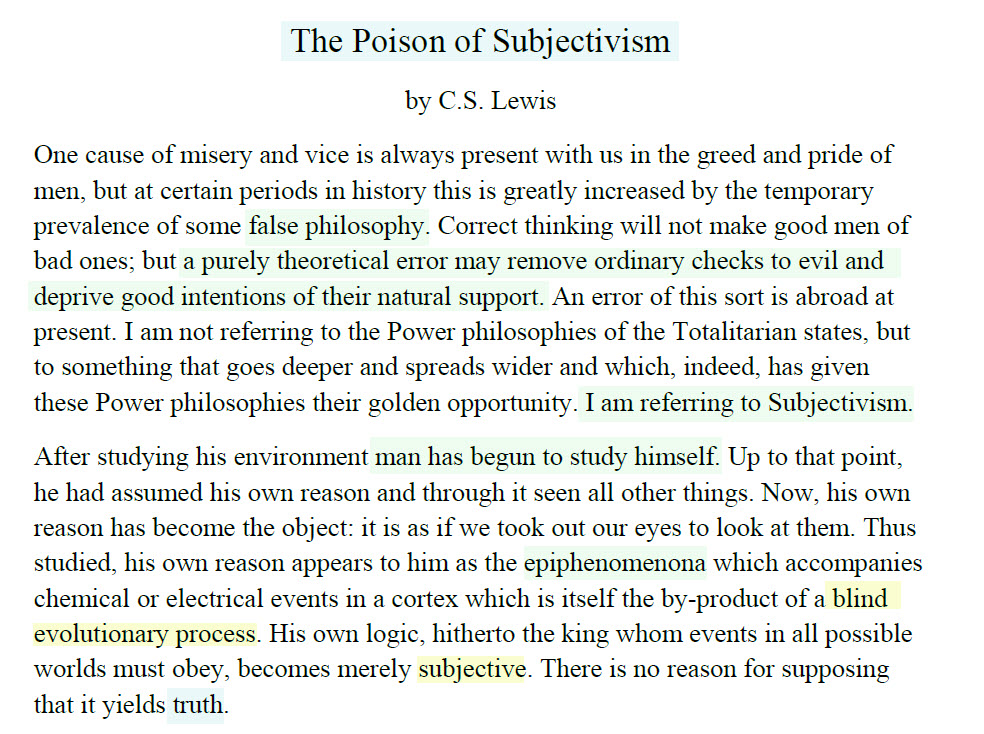 C.S. Lewis and The Poison of Subjectivism
