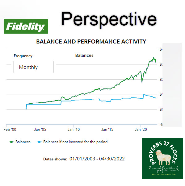 If you look at the April 2020 to April 2022 balances in my ROTH IRA, you will see that there are bumps in the road. But during the downward ticks, I kept my perspective.