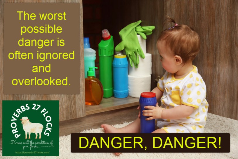 When grandchildren came along, we started the process all over again. In fact, even though all of our grandchildren are old enough to know better, we still have child-proof locks on the cabinet under the kitchen sink. Under that cabinet lurks all kinds of chemicals that can kill the uniformed or the gullible. The colorful bottles and spray cans contain liquids that are labeled with “KEEP OUT OF REACH OF CHILDREN.”