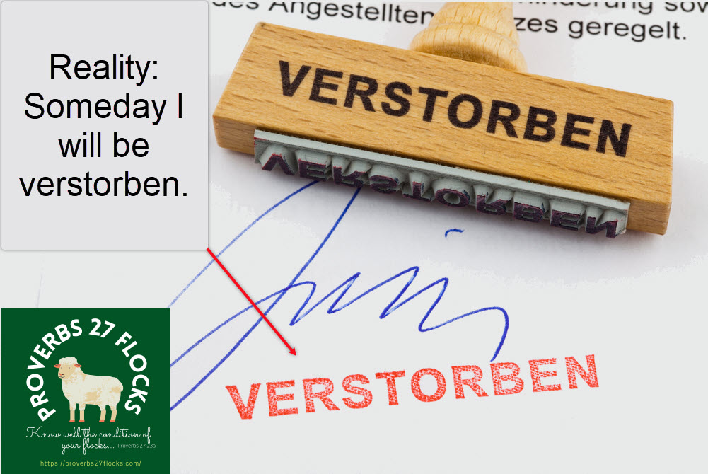 It is true that someday I will be, as the German language says, verstorben. That is, I will be deceased. I have a will and Cindie is the beneficiary of all of the assets in my name. We also have a trust with Cindie as the primary trustee and others as secondaries to help Cindie if and when she needs help. I’ve done my love Cindie work, and I would encourage you to do your love your family as well.