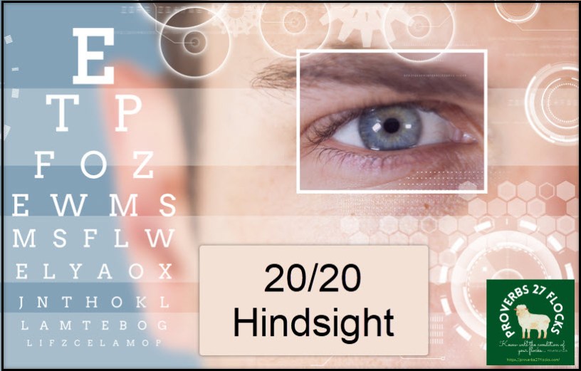 Normal vision is called 20/20. Therefore, 20/20 hindsight is the ability to see something done and understand it more fully or to get it right. For most of us, hindsight is our normal approach. We do something and then look at the results and think, “that was dumb!” Hindsight is insight into the significance and nature of an event or action after the event or action is past. I have lots of hindsight. I can see clearly now.