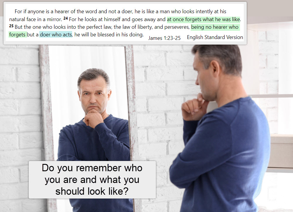 James 1:23-25 Do you forget what you look like? Do you remember who you are? Do you know what you should look like?